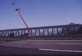 large photovoltaic (PV) energy system has been integrated into a noise barrier at the A9-motorway near Ouderkerk aan de Amstel (Amsterdam), the Netherlands. The PV-system consists of 2160 modules with module inverters.